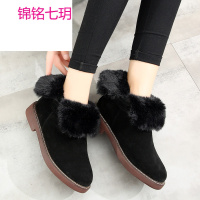 锦铭七玥2017 靴子新款真皮翻毛雪地靴女棉鞋内增高女靴短靴