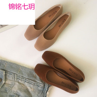 锦铭七玥2018新款女鞋绒面单鞋平跟浅口韩版百搭平底鞋防滑学生乐福鞋复古