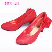 锦铭七玥新款 新娘女鞋 韩国公主鞋 红色中跟婚鞋义乌厂