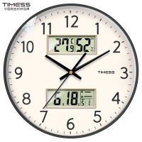 TIMESS日历钟表挂墙挂钟客厅家用时钟万年历温湿度双屏电子石英钟