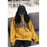 春装女装宽松连帽字母抓绒套头卫衣女春秋上衣韩版潮学生外套女