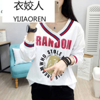 衣姣人(YIJIAOREN)初中学生女抓绒宽松V领套头卫衣中学生秋季印花加厚女装打底衫潮