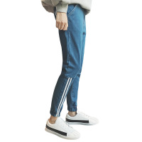 冬季束脚哈伦裤男裤子松紧收脚牛仔裤男士百搭加绒加厚休闲束脚裤