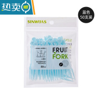敬平水果叉塑料小叉子透明水果签点心蛋糕叉单独包装果盘叉 蓝色[一包50支]