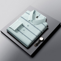 2026春季新款长袖polo衫男翻领条纹锦氨冰丝弹力舒适休闲男士T恤