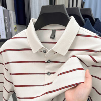 春夏新款男士条纹短袖Polo衫轻商务休闲简约轻商务翻领新疆棉