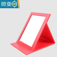 敬平镜子折叠化妆镜大号台式梳妆高清便携女生镜学生宿舍PU皮革随身镜 大红中号 (镜面加厚)便携式用镜