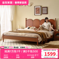 全友家居中古风小户型卧室家具实木床脚宽大床靠家用双人床