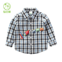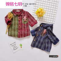 锦铭七玥春装新款儿童衬衫全棉格子童衬衫小熊挂件款男童衬衫一件代发