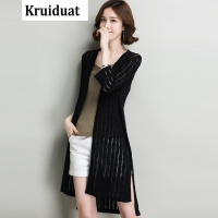 Kruidvat2017夏季新款色中长款镂空防晒衫V领七分袖薄款冰麻针织开衫女M6