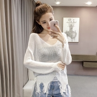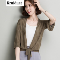 Kruidvat2017夏季新款针织空调衫女开衫短款V领镂空喇叭中袖薄款外套