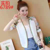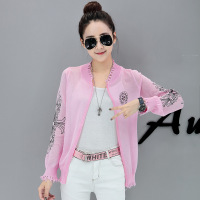 2017新款瞌睡兔星星印花V领花边轻薄雪纺衫女夏2017新款罩衫半透防晒衫