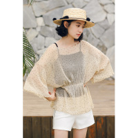蜜妃儿夏装新款女喇叭袖宽松针织衫女薄款空调衫防晒服上衣潮
