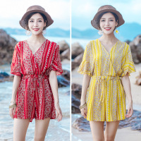 情妮妃8889#裙裤连体裤女夏雪纺阔腿2018新韩版高腰显瘦印花连体衣女装连衣裤
