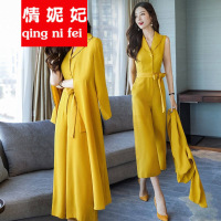 情妮妃2018春装新款连体裤韩版高腰系带修身显瘦时髦套装阔腿裤连衣裤潮