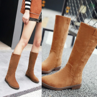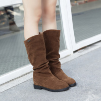 2017秋冬短靴绒面长靴平跟内增高筒靴平底磨砂中筒学生女靴子
