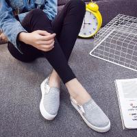 秋季女鞋厚底帆布鞋女韩版板鞋松糕跟一脚蹬懒人鞋学生布鞋休闲鞋 冲量让价