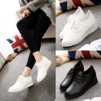 秋季小白鞋内增高板鞋平跟休闲女鞋英伦风白色系带单鞋女皮鞋