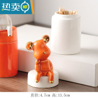 敬平卡通小熊牙签盒创意家用客厅轻奢便携牙签罐子北欧ins餐厅牙签筒 白牙签筒+橙坐熊
