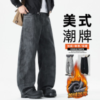 潮牌百搭运动卫裤男秋冬款美式复古阔腿裤青少年垂感休闲加绒裤男