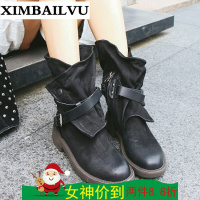 品牌女鞋2017秋冬季真皮马丁靴英伦复古中筒骑士靴女平底靴