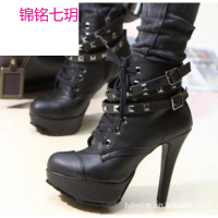 锦铭七玥大码42码女靴新款韩版搭扣高跟短靴 骑士靴靴子女靴 时装靴