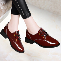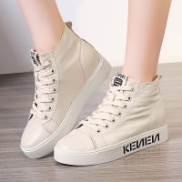 2018春季新款低跟单鞋女真皮高帮鞋女平底系带女鞋时尚字母休闲鞋学院风板鞋女小白鞋女
