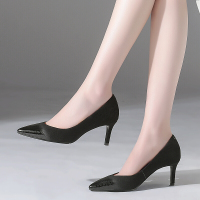 2018夏季新款真皮女鞋高跟细跟尖头浅口套脚懒人鞋女OL职业纯黑工作鞋女办公室性感气质夜店鞋欧美潮