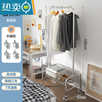 敬平多功能移动衣架推车落地家用阳台晾衣架卧室挂衣架服装店收纳架子 U型带篮衣架78cm(水晶轮)