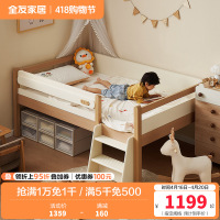 全友家居原木风儿童半高床卧室小户型男女孩带围栏单人床