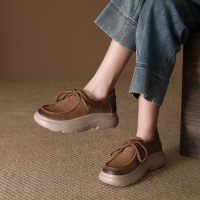 头层牛皮单鞋女2026春季新款复古系带厚底圆头百搭袋鼠鞋豆豆鞋
