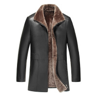 海宁男皮毛一体男冬季新款真皮皮衣男装中长款绵羊皮衣羊羔毛外套黑色