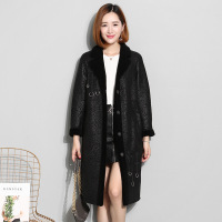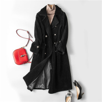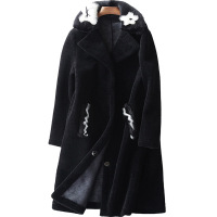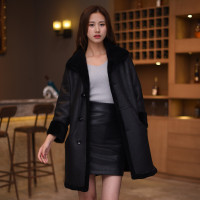海宁新款时尚复合皮毛一体女羊剪绒中长款皮草羊羔毛外套大衣黑色