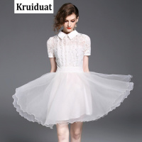 Kruidvat2017夏季女装白色蕾丝修身高腰大摆A字蓬蓬裙Z013白色