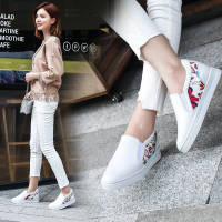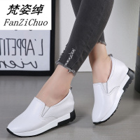 2017真皮小白鞋女春秋厚底单鞋百搭内增高乐福鞋懒人休闲松糕女鞋