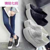 春季韩版百搭亮片松糕低休闲鞋10cm内增高女鞋厚底一脚蹬懒人单鞋