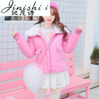 纪尼诗女装2018冬装新款短款甜美可爱毛毛翻领糖果色衣羽绒服袄外套粉色均码粉色均码