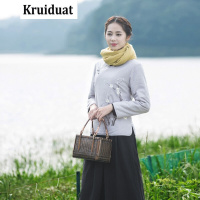 Kruidvat2017春季新款民族风女装夹棉短上衣改良旗袍B078豆沙绿