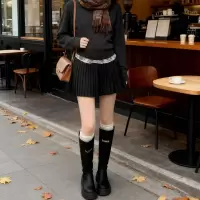 咖色毛呢百褶短裙女秋冬季高腰a字半裙羊毛jk裙小个子黑色半身裙