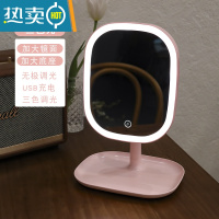 敬平台式led化妆镜带灯ins风梳妆镜卧室桌面网红美妆补光小镜子便携 大号升级三色光-粉色 带收纳便携式用镜