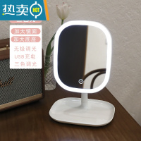 敬平台式led化妆镜带灯ins风梳妆镜卧室桌面网红美妆补光小镜子便携 大号升级三色光-白色 带收纳便携式用镜