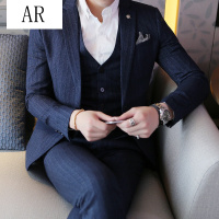 AR西服套装男韩版修身条纹2018青年三件套休闲英伦风新郎结婚礼服