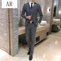 AR西服套装男士三件套商务正装职业西装修身伴郎新郎结婚礼服秋季日系男士西服套装三件套