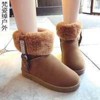 冬季新款韩版女保暖棉鞋毛毛平底女短靴时尚加绒低筒靴水钻雪地靴