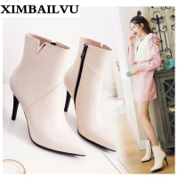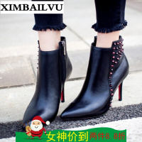品牌女鞋牛皮高跟短靴女防水台女靴子细跟真皮及裸靴绒里靴低筒靴2017秋冬新款马丁靴