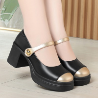 旗袍模特走秀鞋软底高跟不累脚单鞋职业工作鞋粗跟圆头防水台女鞋