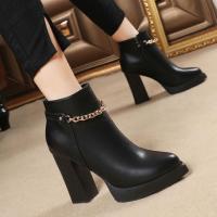 2017秋冬新款粗跟短靴女尖头短筒女靴防水台高跟鞋英伦风马丁靴潮