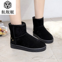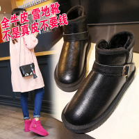 真皮短筒雪地靴女冬季平底加厚羊绒毛棉靴磨砂牛皮女靴子圆头厚底