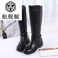 2017冬季新款高筒靴子女韩版百搭长靴侧拉链个性简约粗跟保暖加绒女靴