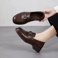 26春秋季新款复古粗跟浅口头层牛皮单鞋通勤时尚舒适百搭四季女鞋